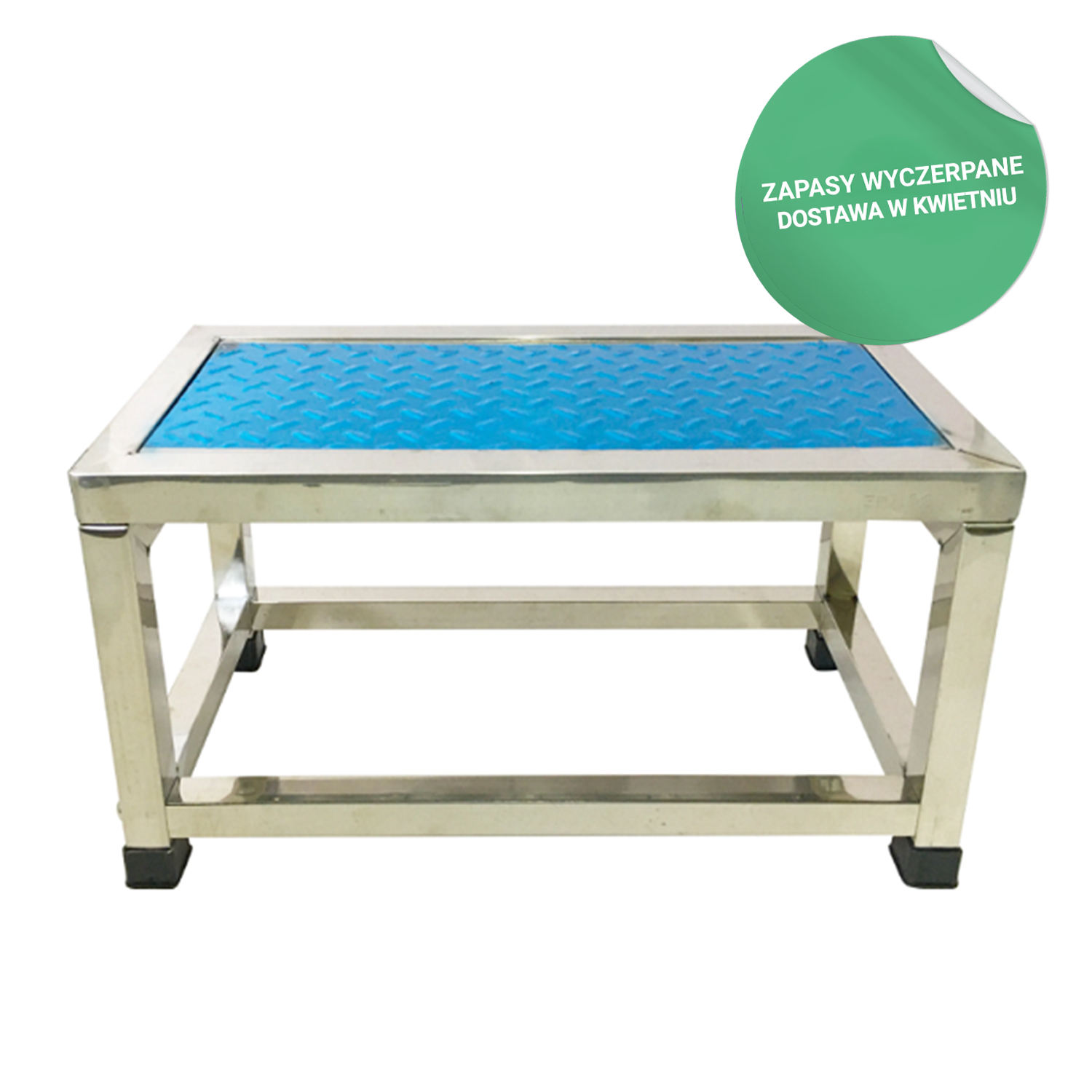 Die einstufige Fußstütze ist aus rostfreiem Stahl gefertigt, wodurch sie korrosionsbeständig und leicht zu reinigen ist. Die Oberfläche auf der Oberseite besteht aus einer speziellen Anti-Rutsch-Struktur, die zu einem größeren Sicherheitsgefühl beiträgt. Die Füße der Fußstütze sind durch rutschfeste Pads geschützt.