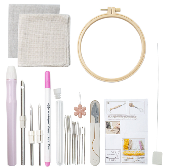 Das Stickerei- und Stickereiset eignet sich für alle, die ihr Strickabenteuer beginnen oder ausbauen wollen. Das Produkt wird mit essentiellem Stickereizubehör geliefert, darunter ein Hocker, Nadeln und Leinwand.